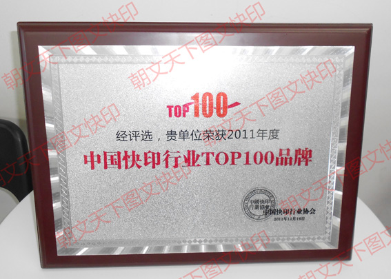 熱烈慶祝本公司2011年度被評(píng)為中國(guó)快印行業(yè)100強(qiáng)!
